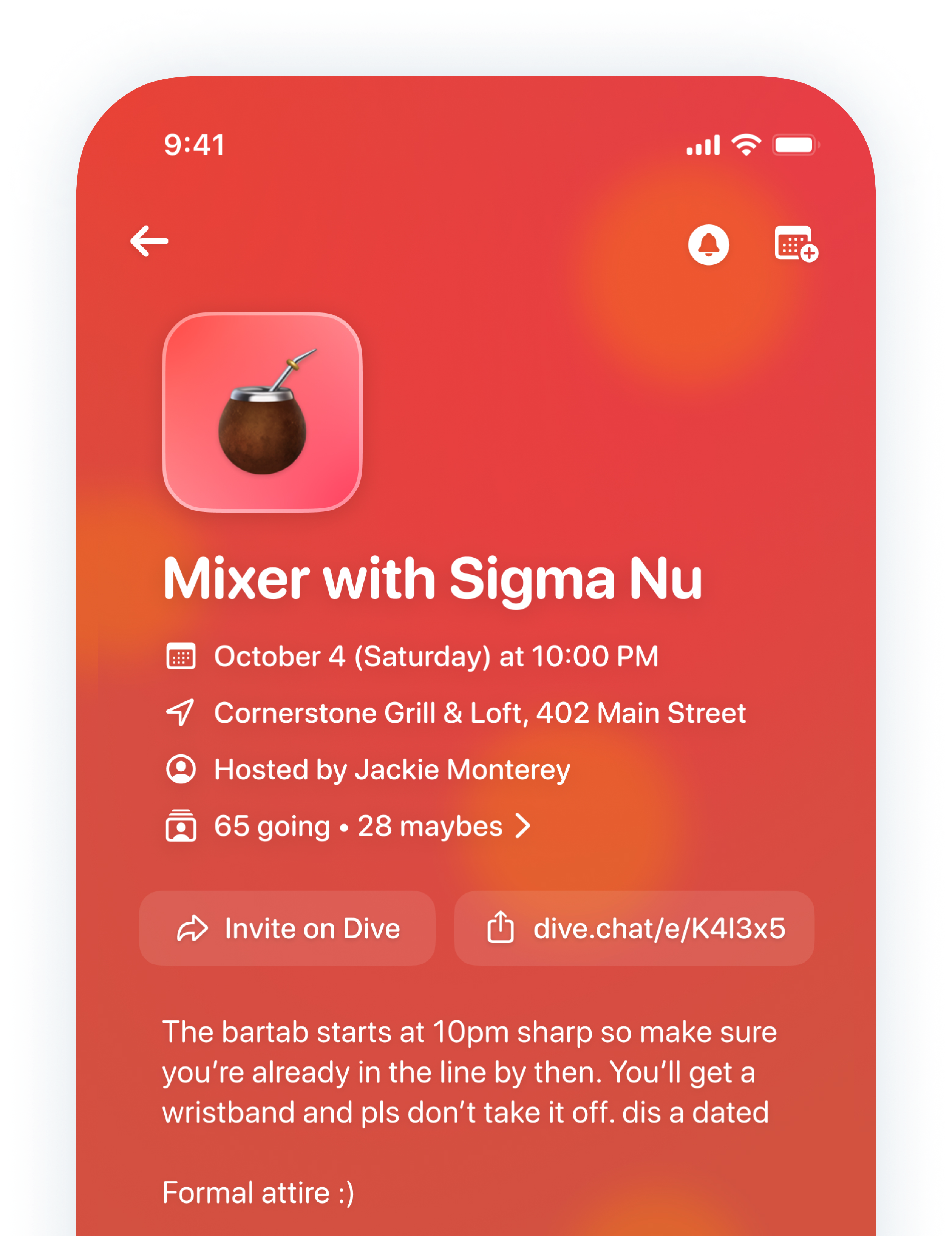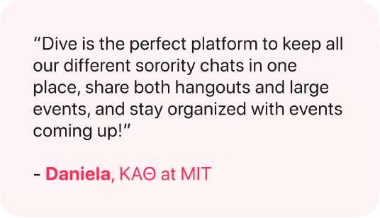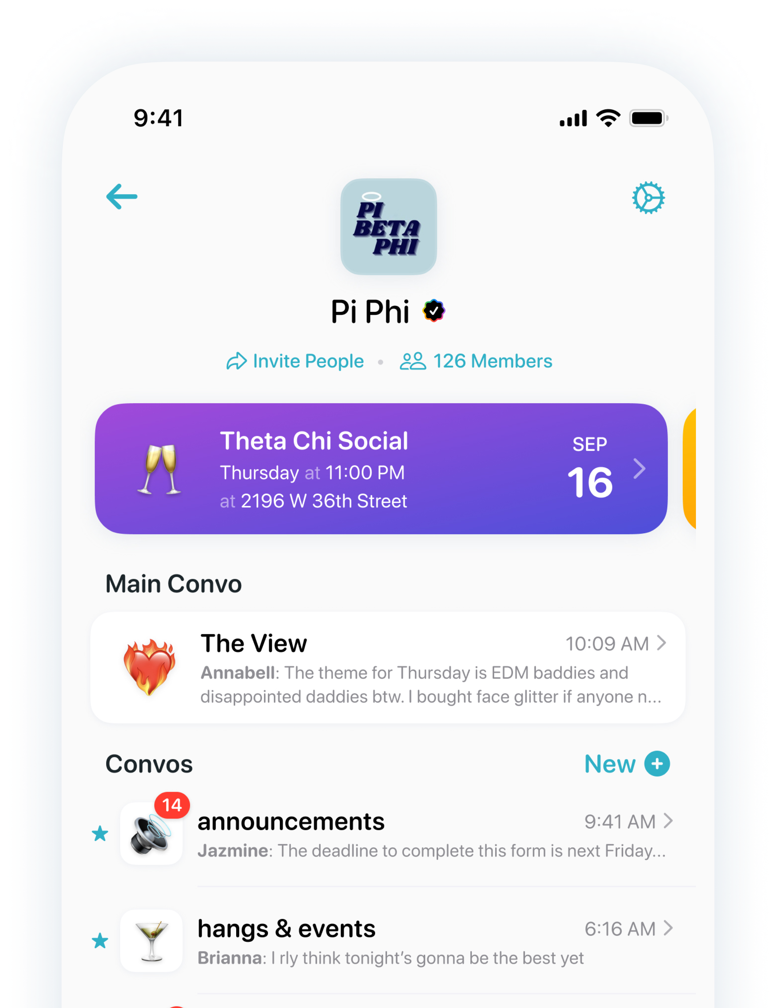 The HQ for your college organizations. No more scrolling for lost chapter meetings, mixer, or party details. Get notified only about the convos you want to be in.